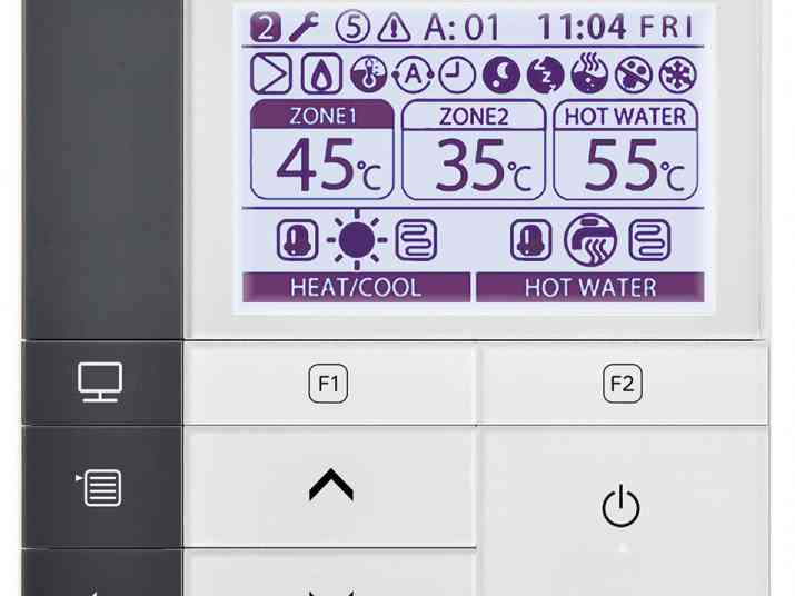 Dedykowany dla systemów ESTIA sterownik został zaprojektowany tak, aby był intuicyjny i łatwy w użyciu. Umożliwia niezależną nastawę̨ dla 2 stref i ciepłej wody użytkowej. Daje możliwość monitorowania zużycia energii.